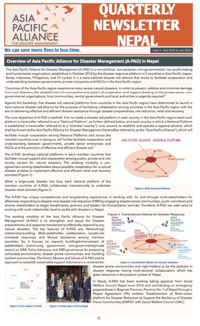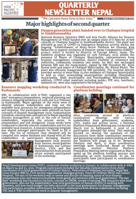 Quarterly newsletter on DRR activities conducted under the project “Establishment of Multisectoral Platform for Disaster Risk Reduction to Support Resiliency of Disaster-prone Communities”.